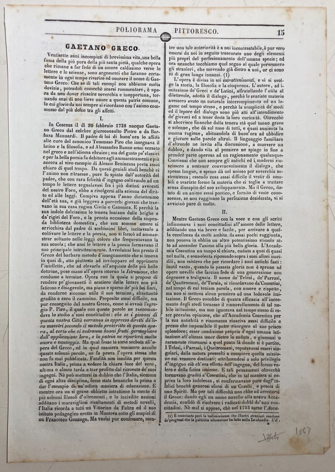 Calabria, Cosenza: Antico Ritratto Di Gaetano Greco, Litografia Dell'800, Riccio