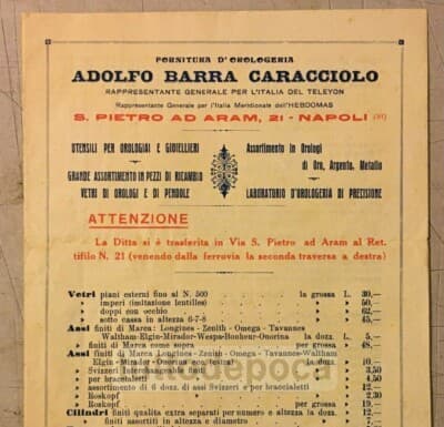 Napoli Barra Caracciolo, Orologeria E Gioielleria: Antico Listino Pubblicitario, 1926