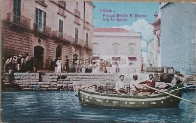 Puglia, Trani, Animata Veduta Del Porto E Piazza Sedile Con Pescatori, Cartolina