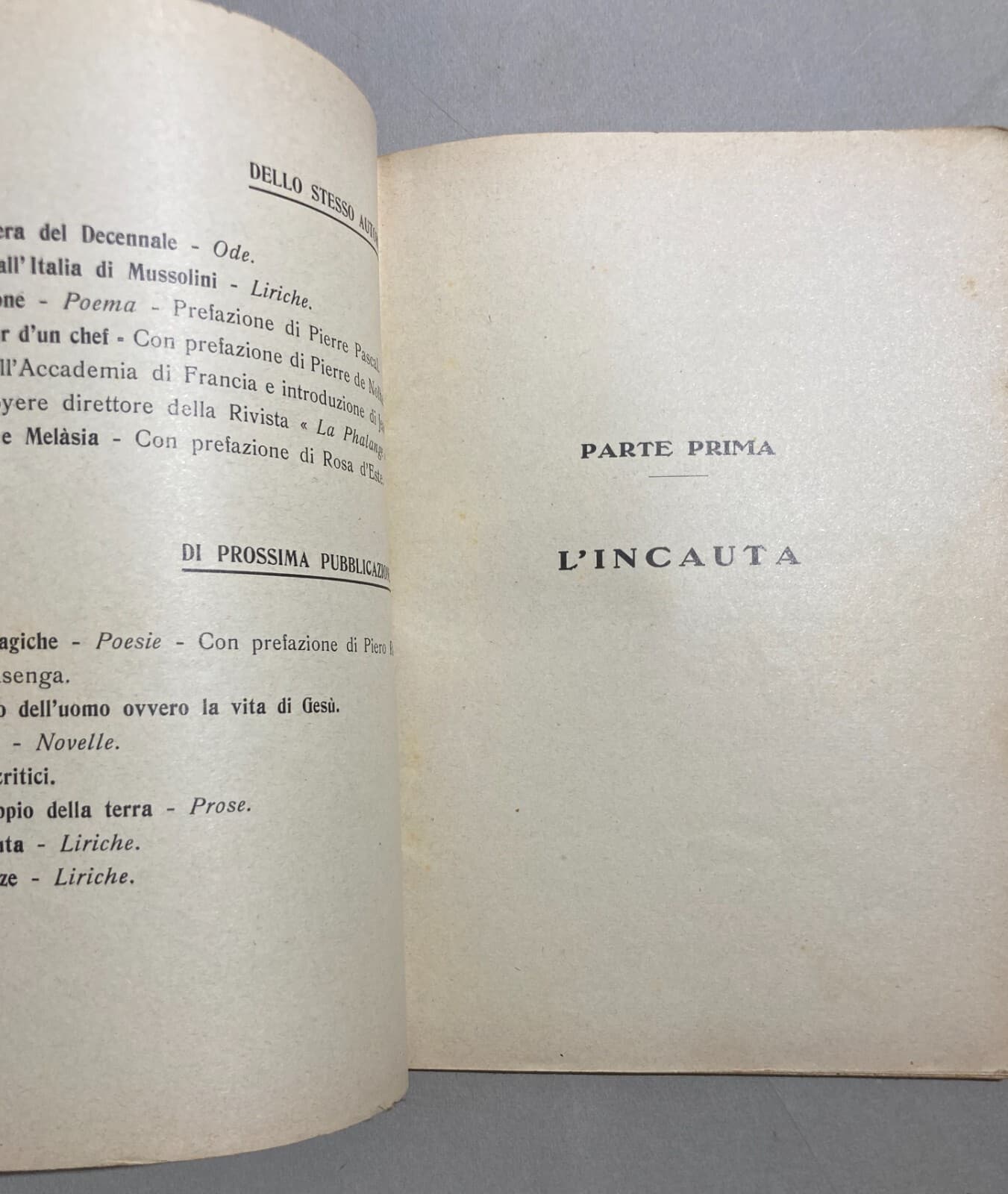 Pasquale Piazzolla, Ore Bianche. Edizione 1940 Con Dedica Autografa