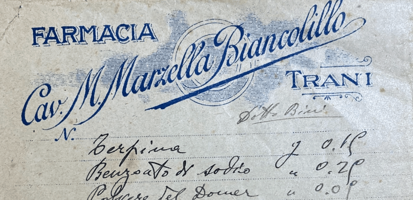 Medicina, Farmacia E Chimica: Antica Busta Pubblicitaria Della Farmacia Marzella Biancolillo A Trani, Puglia