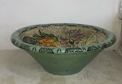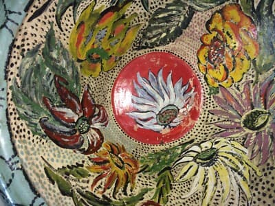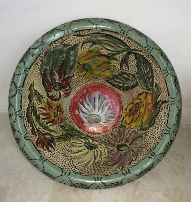 Arte Popolare: Grande Ciotola In Ceramica Con Decori Floreali Policromi