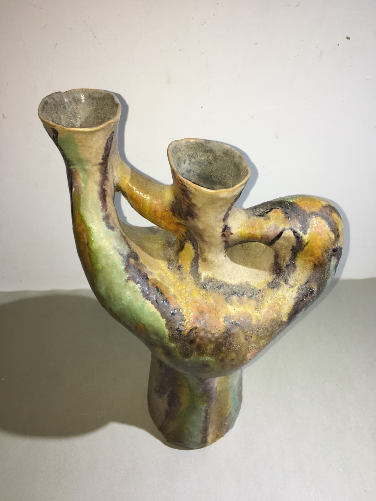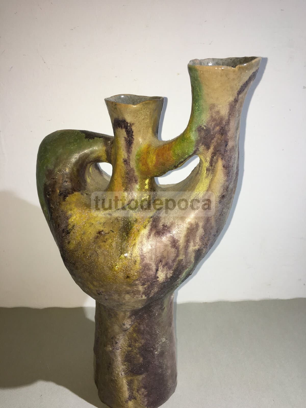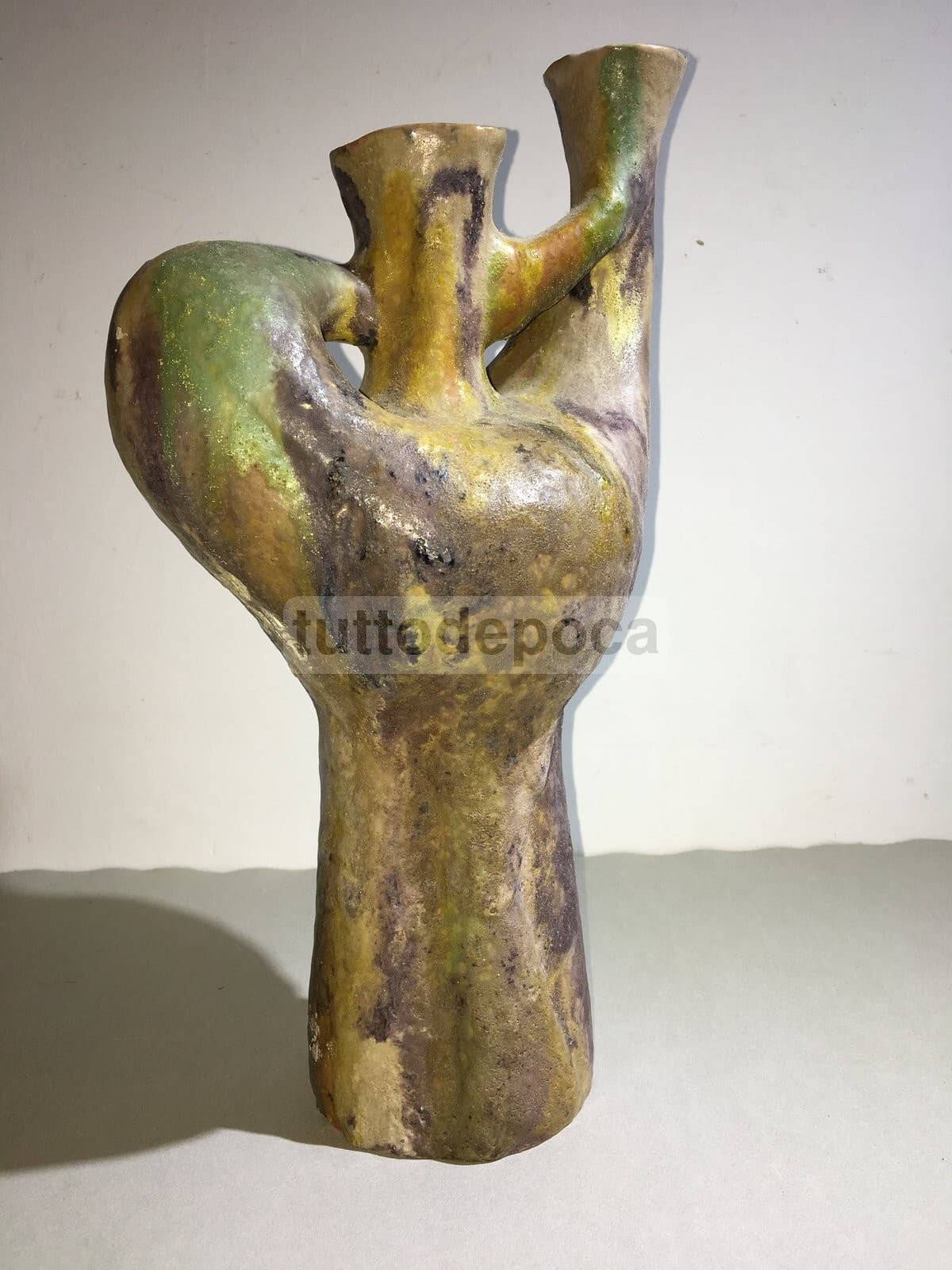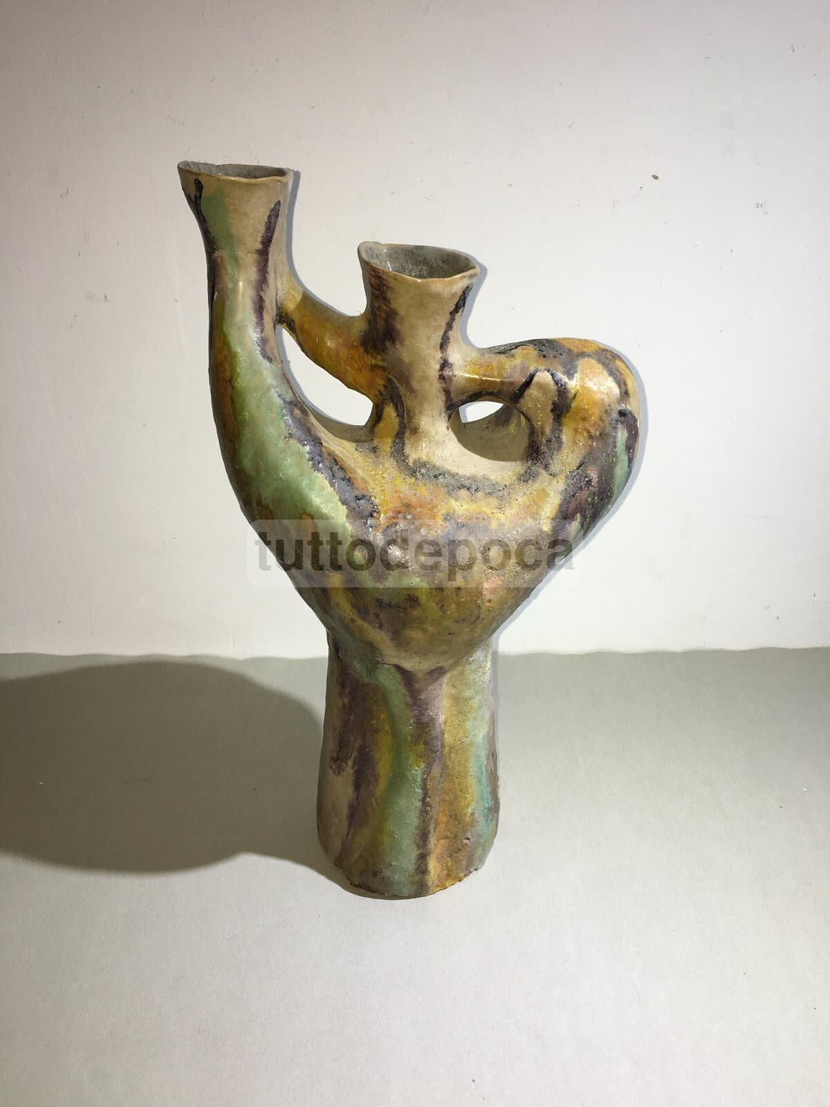 Vaso In Ceramica Artistica, Design Scultoreo Policromo, 1950 Circa