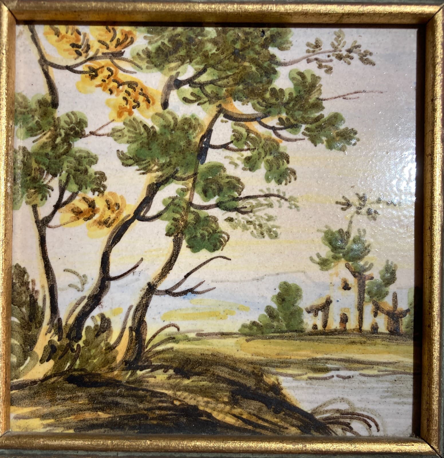 Abruzzo, Castelli. Mattonella In Ceramica Dipinta A Mano Con Veduta Paesaggistica