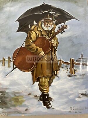 Veduta Bucolica Con Pastorella E Pecore Mattonella Dipinta Abruzzo