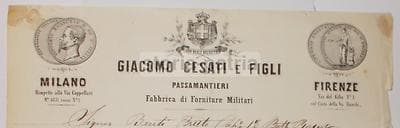 Milano, Firenze. Forniture Militari, Ditta Cesati, Passamantieri, 1865