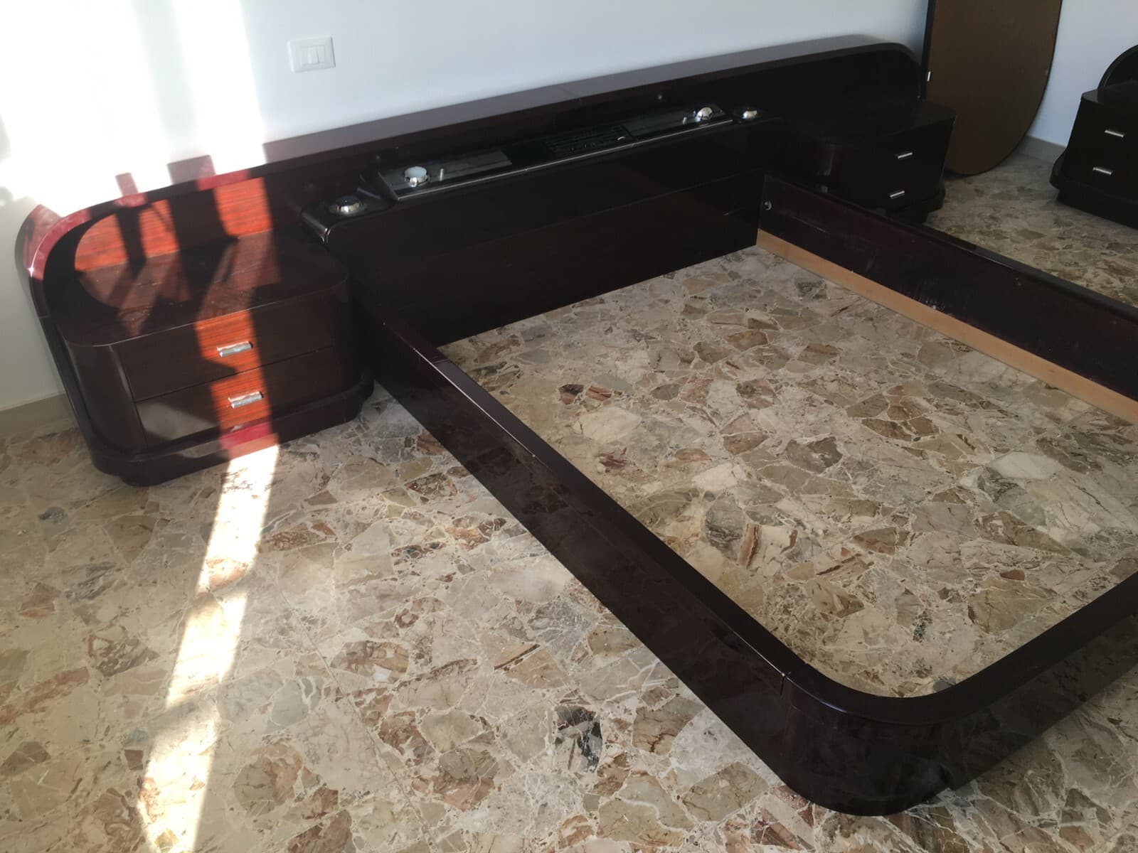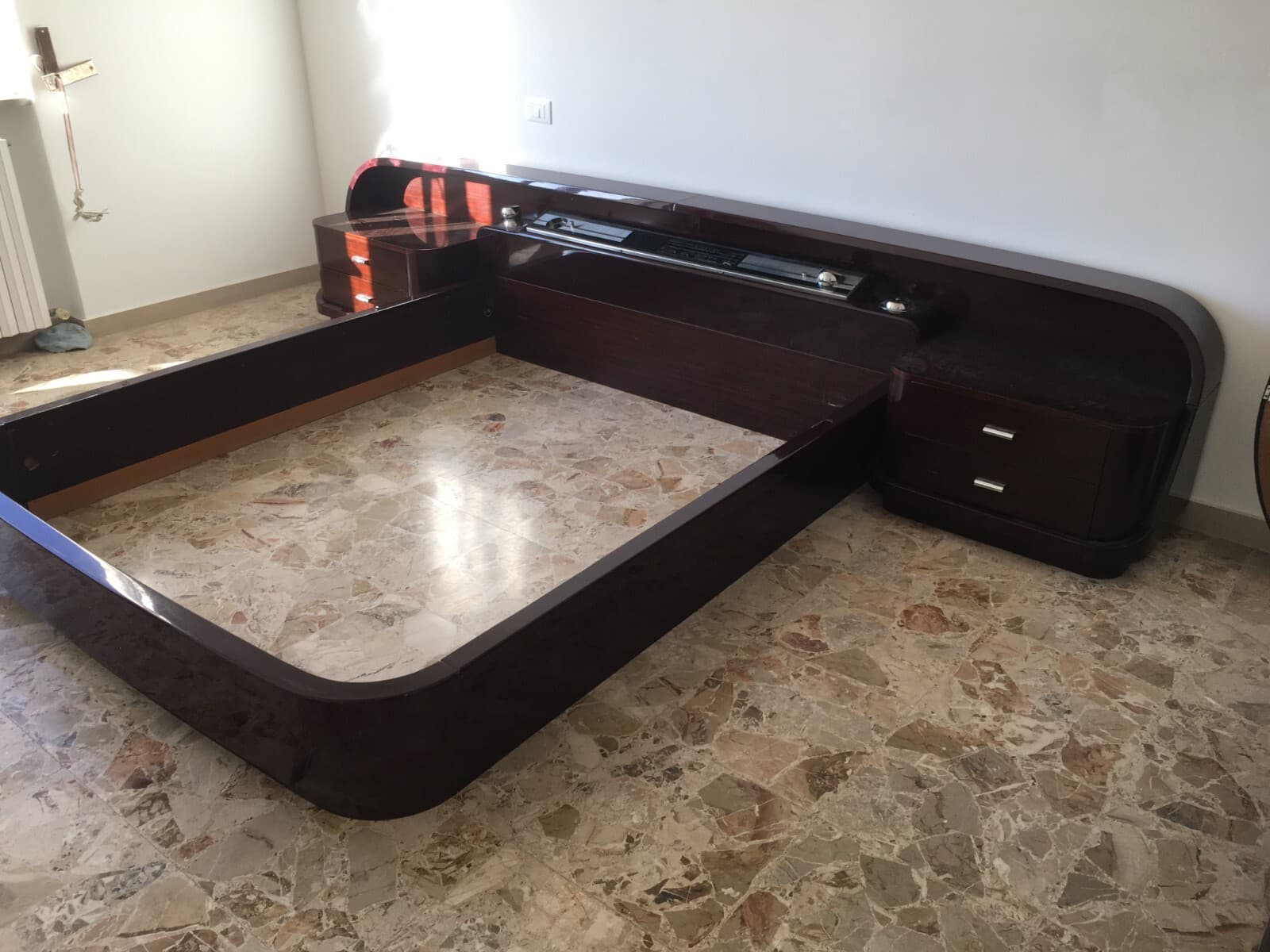 Letto Con Comodini E Radio Integrata, Design Aerodinamico Anni '70