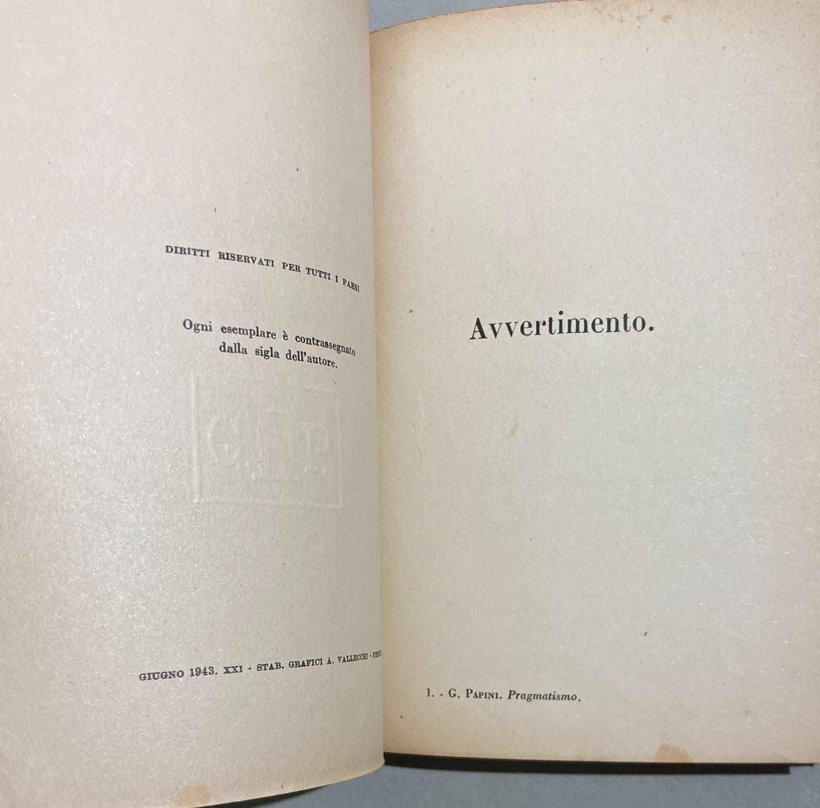 Filosofia, Pragmatismo, Monismo E Politica: Antica Edizione Di Giovanni Papini, 1943