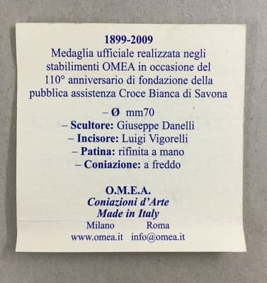 Scultura, Arte Della Medaglia. Savona, Croce Bianca. Artisti Danelli E Vigorelli