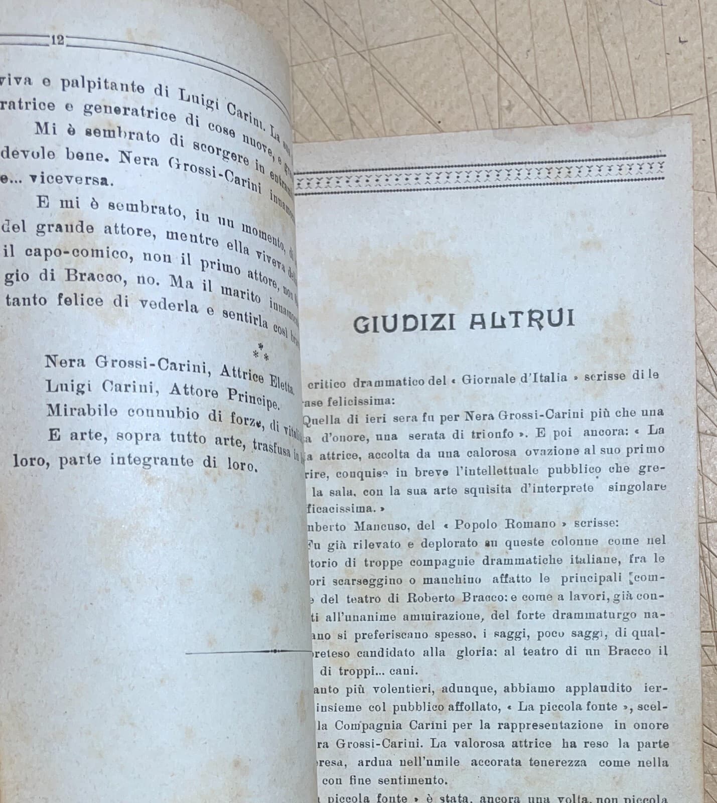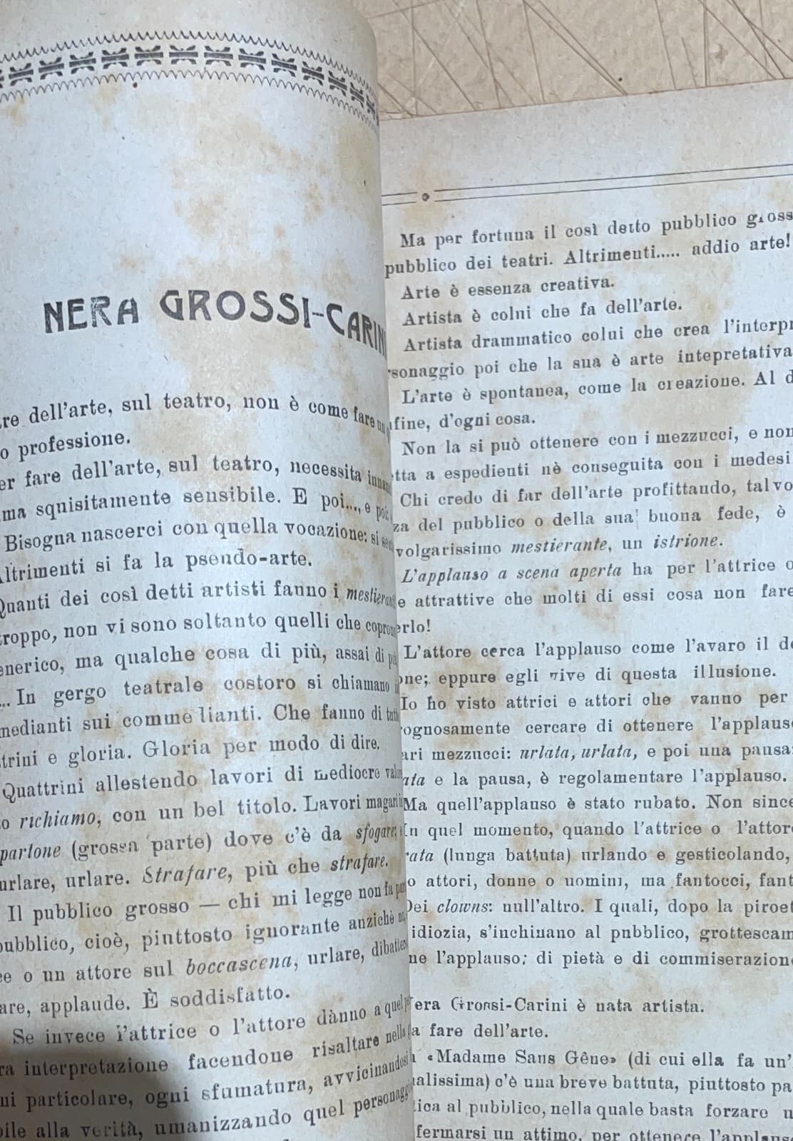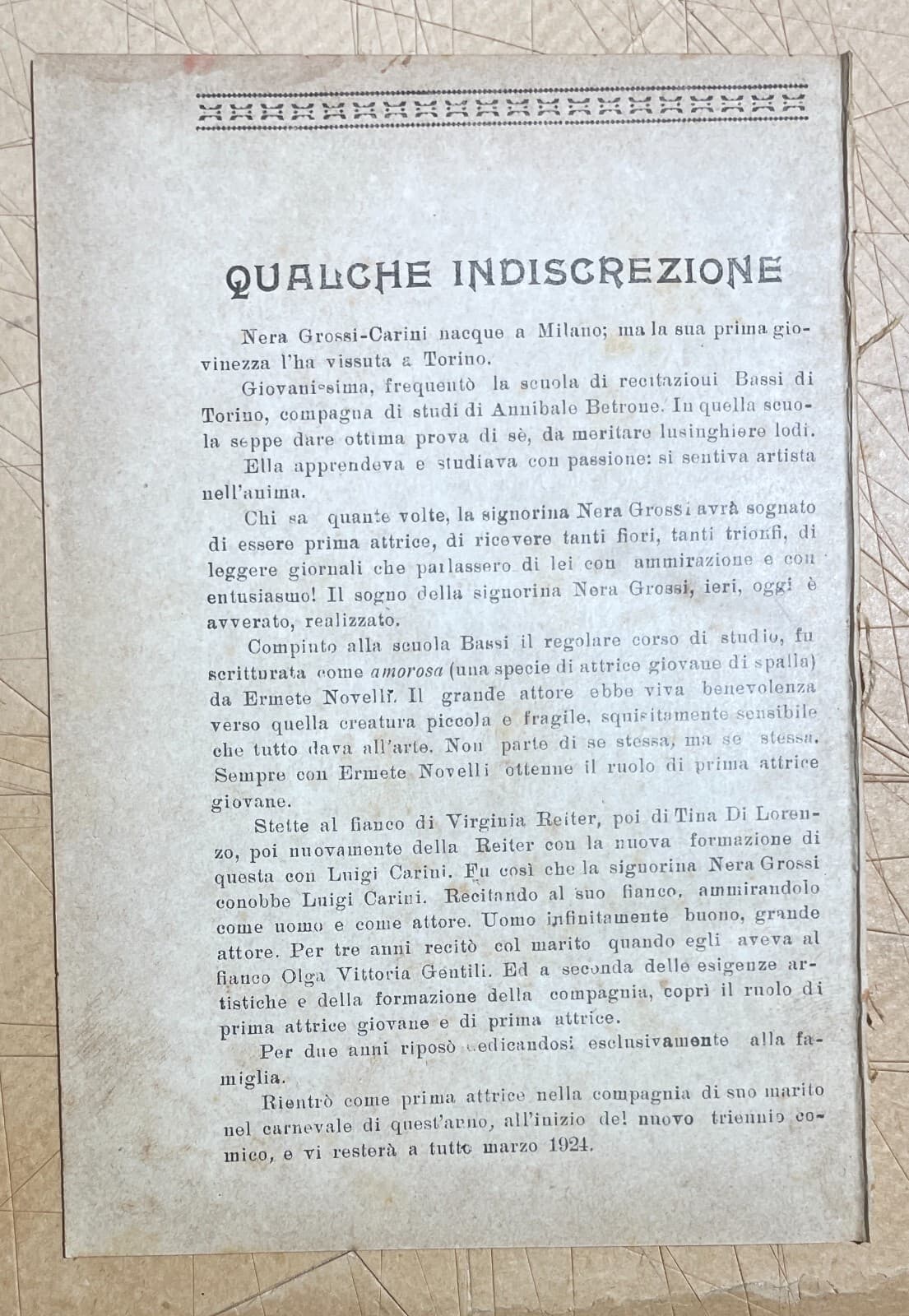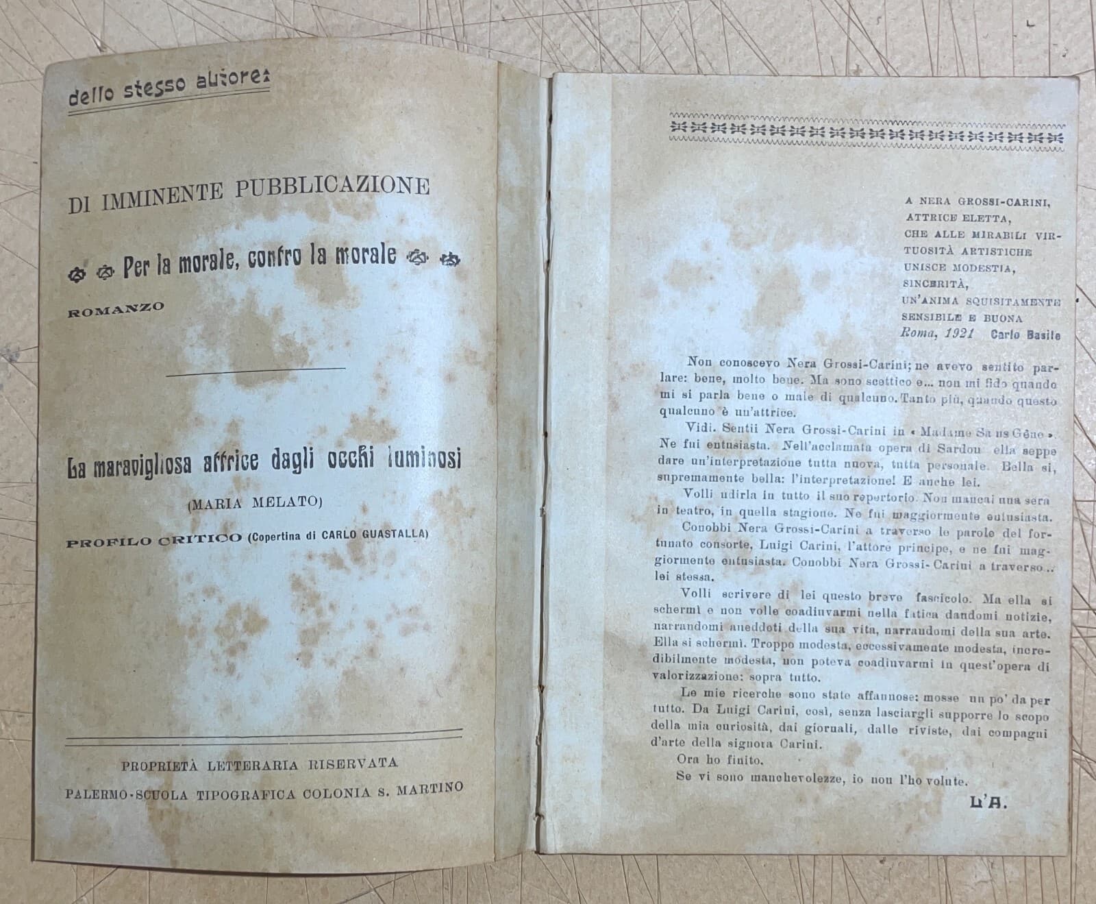 Teatro: L'Attrice Nera Grossi Carini. Antica Edizione Siciliana, Basile, 1922