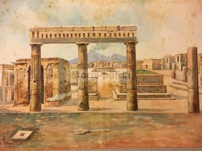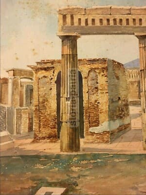 Pompei, Antiche Rovine E Vesuvio: Veduta Panoramica Firmata