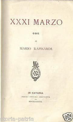 Mario Rapisardi, XXXI Marzo: Ode, Catania, Giannotta, 1882 Rarità