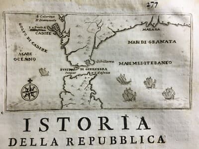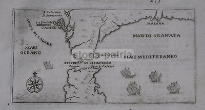Mappa Di Marineria Antica: Topografia Del '700 Di Cadice, Granata, Malaga, Gibilterra E Navi