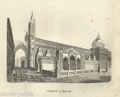 Sicilia, Palermo: Cattedrale, Architettura, Antica Prospettiva, Xilografia Dell'Ottocento