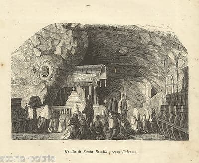 Sicilia, Palermo: Grotta Di Santa Rosalia. Animata Veduta Interna. Xilografia Dell'800