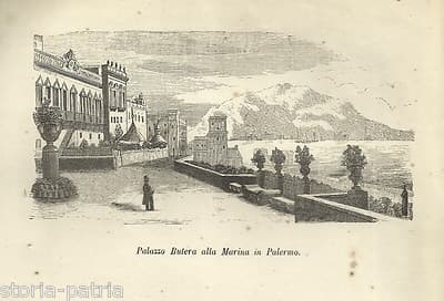 Sicilia Marina Di Palermo Palazzo Butera, Prospettiva Xilografia Dell'800