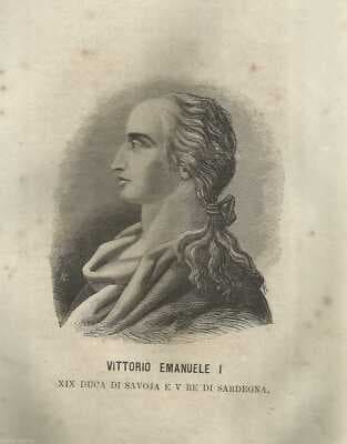 Vittorio Emanuele I, Re Di Sardegna Ritratto Xilografico Della Casata Savoia (XIX Secolo)