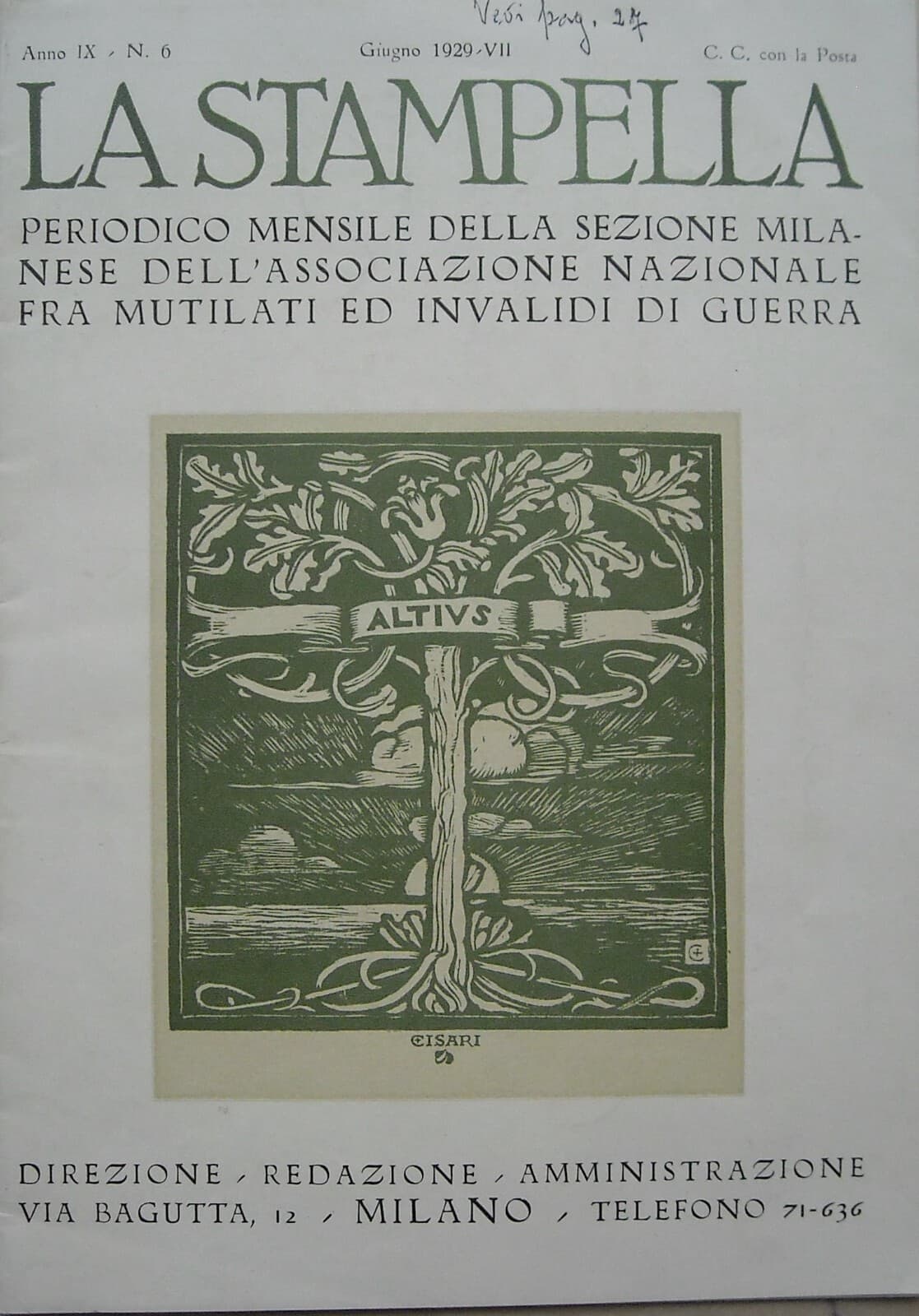 La Stampella: Periodico Della Sezione Milanese Dell'Associazione Nazionale Fra Mutilati Ed Invalidi Di Guerra, Giugno 1929