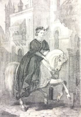 Beatrice Di Portogallo E Carlo III. Antica Veduta, Incisione Dell'Ottocento