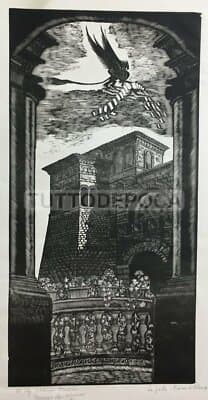 Perugia, Umbria: L'Antica Porta Etrusca. Allegorica Incisione Di Bruno Da Osimo