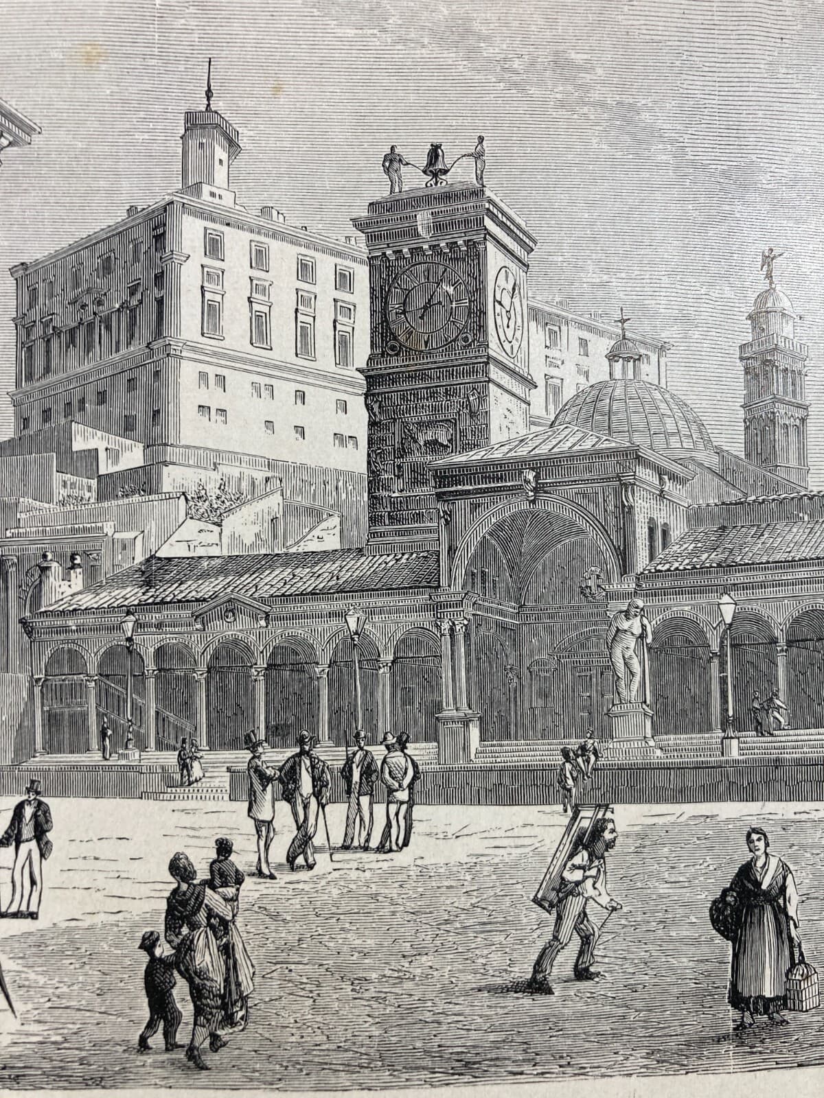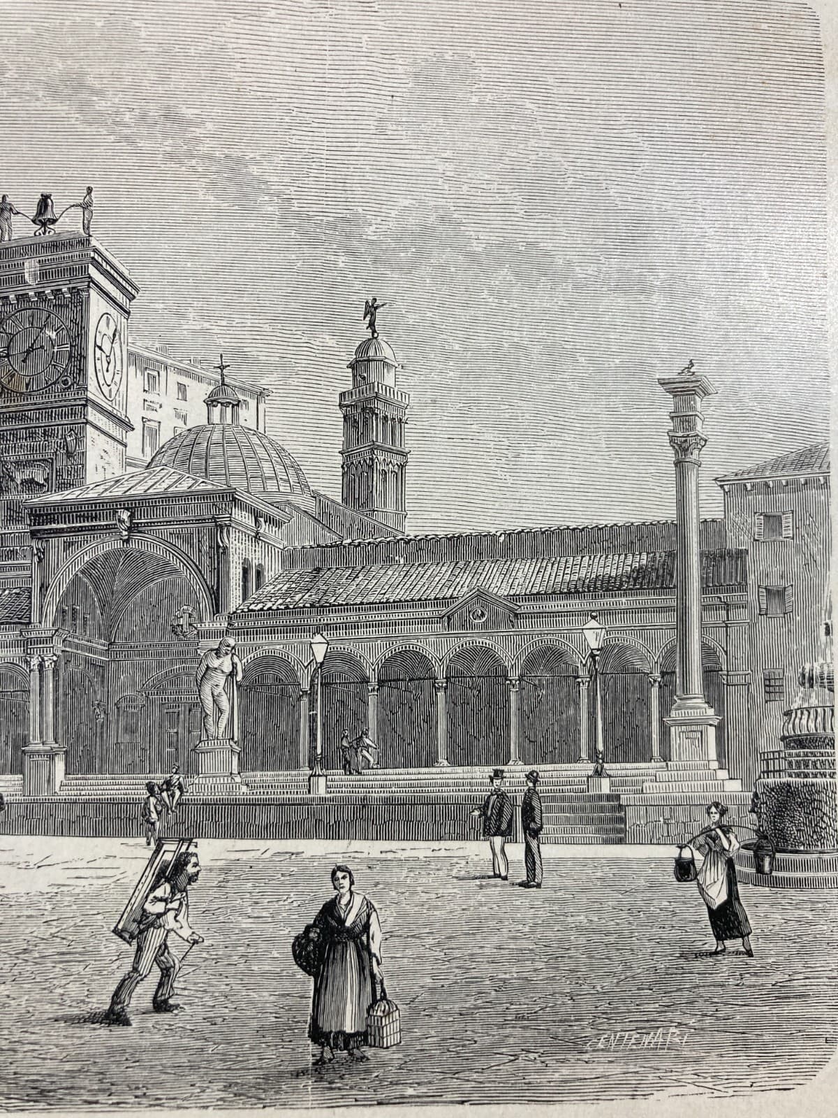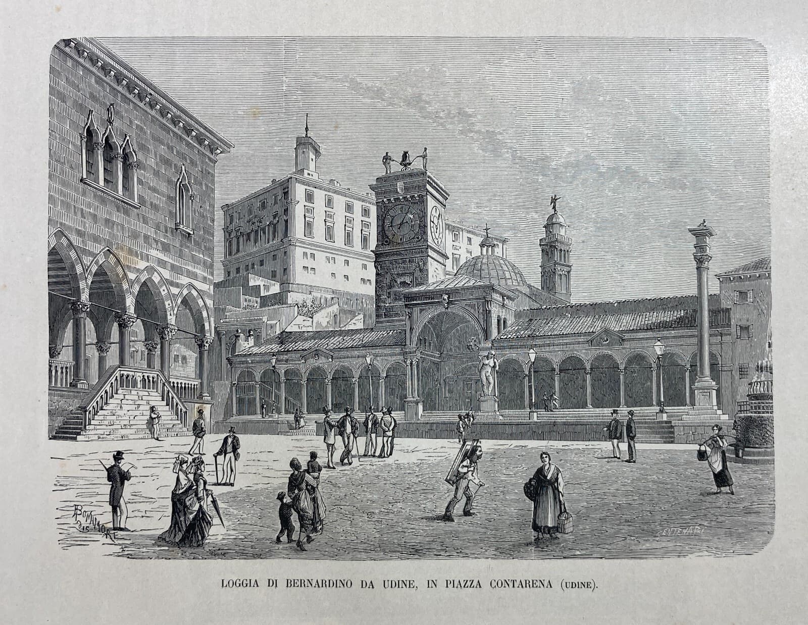 Udine: Piazza Contarena, Architettura Del Loggiato In Una Veduta Animata d'Epoca