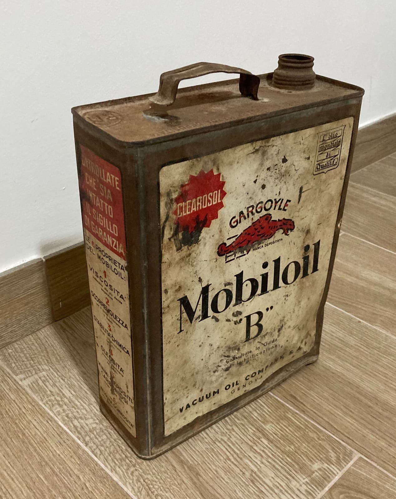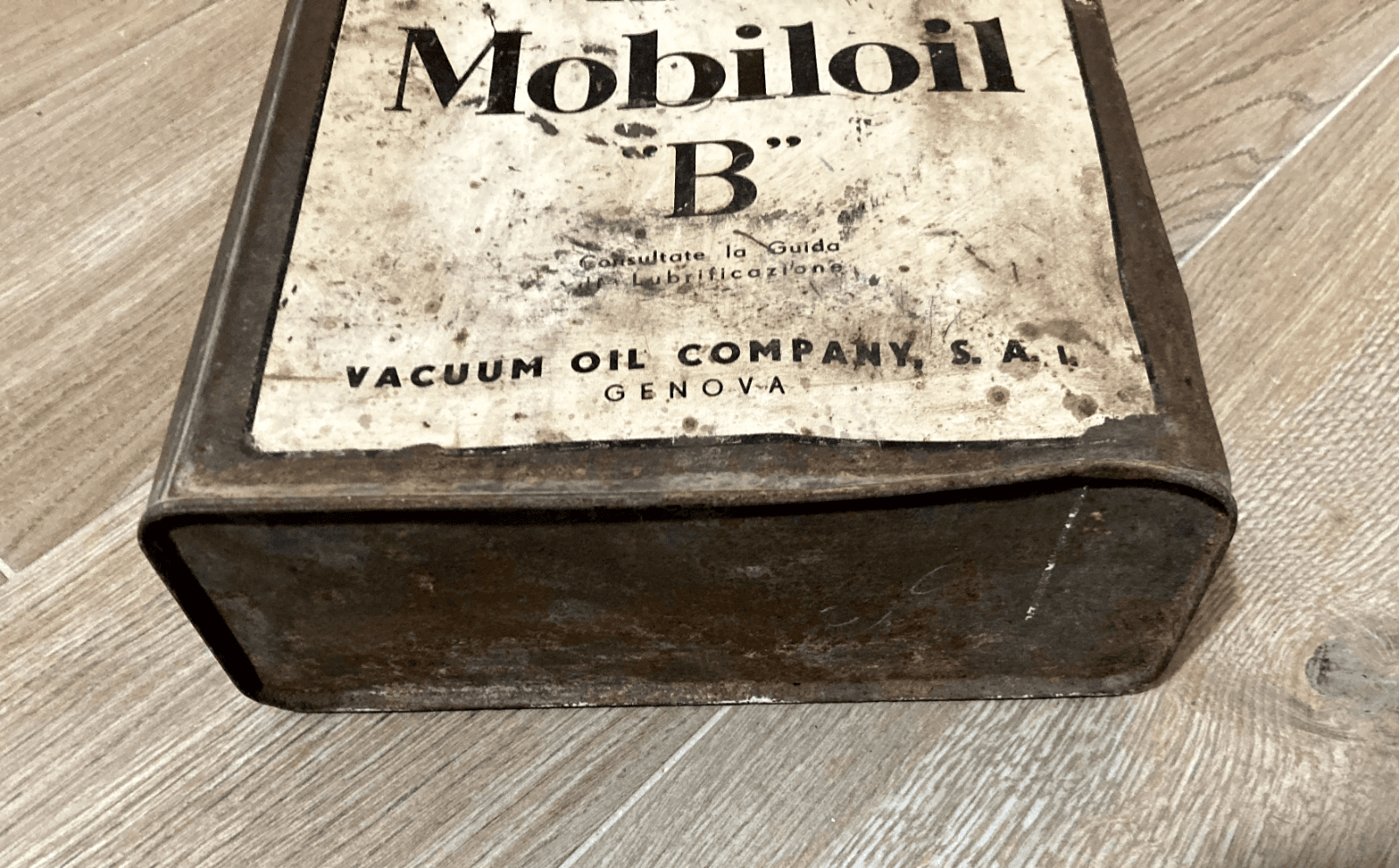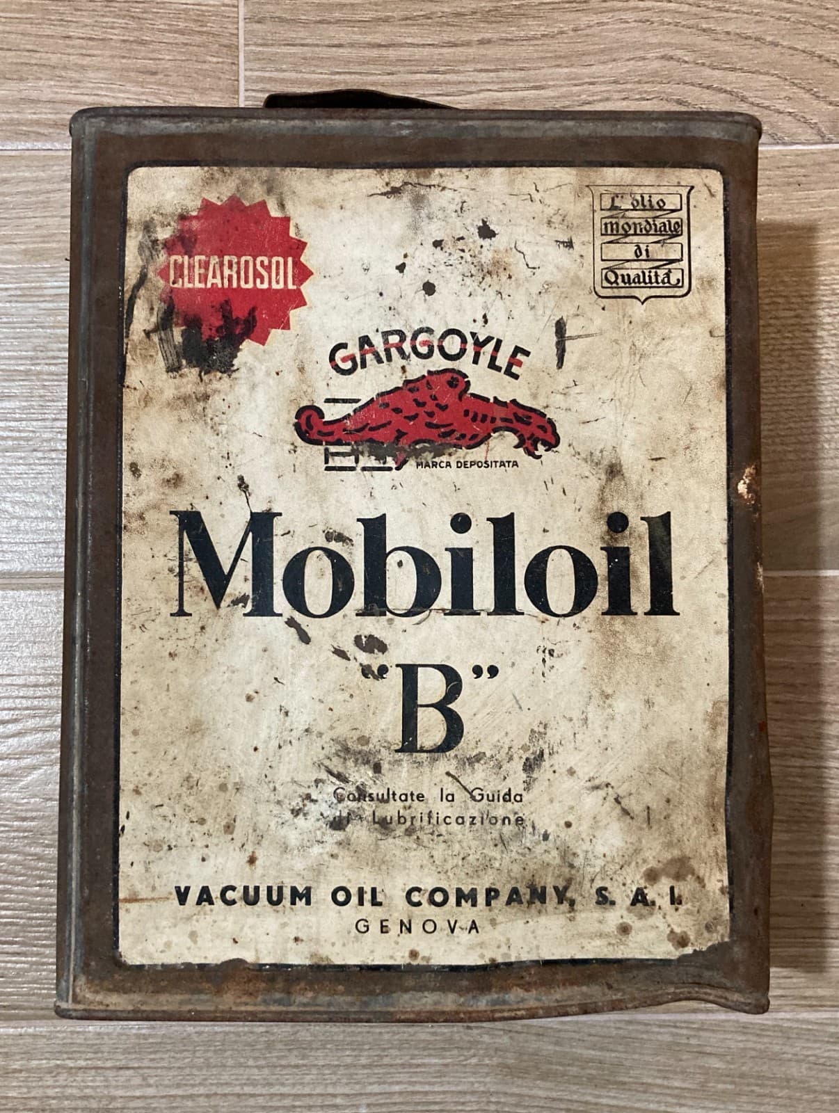 Motori, Lubrificanti: Mobiloil "B", Genova, Vacuum Oil Company. Latta Pubblicitaria.