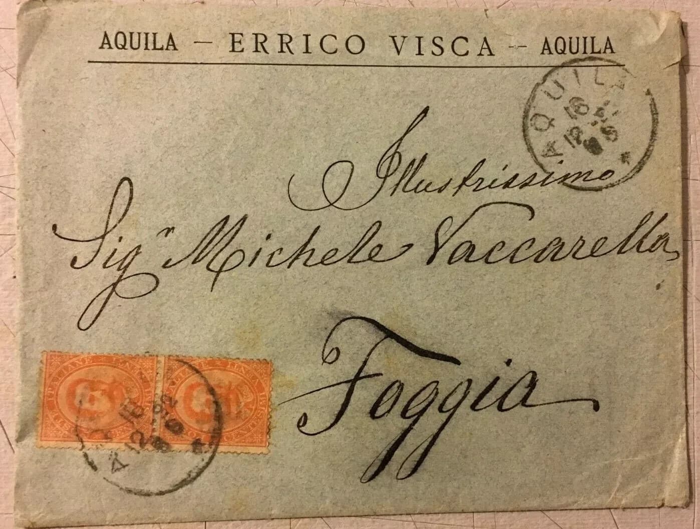 Abruzzo, L'Aquila, Errico Visca: Busta Pubblicitaria E Filatelia Antica
