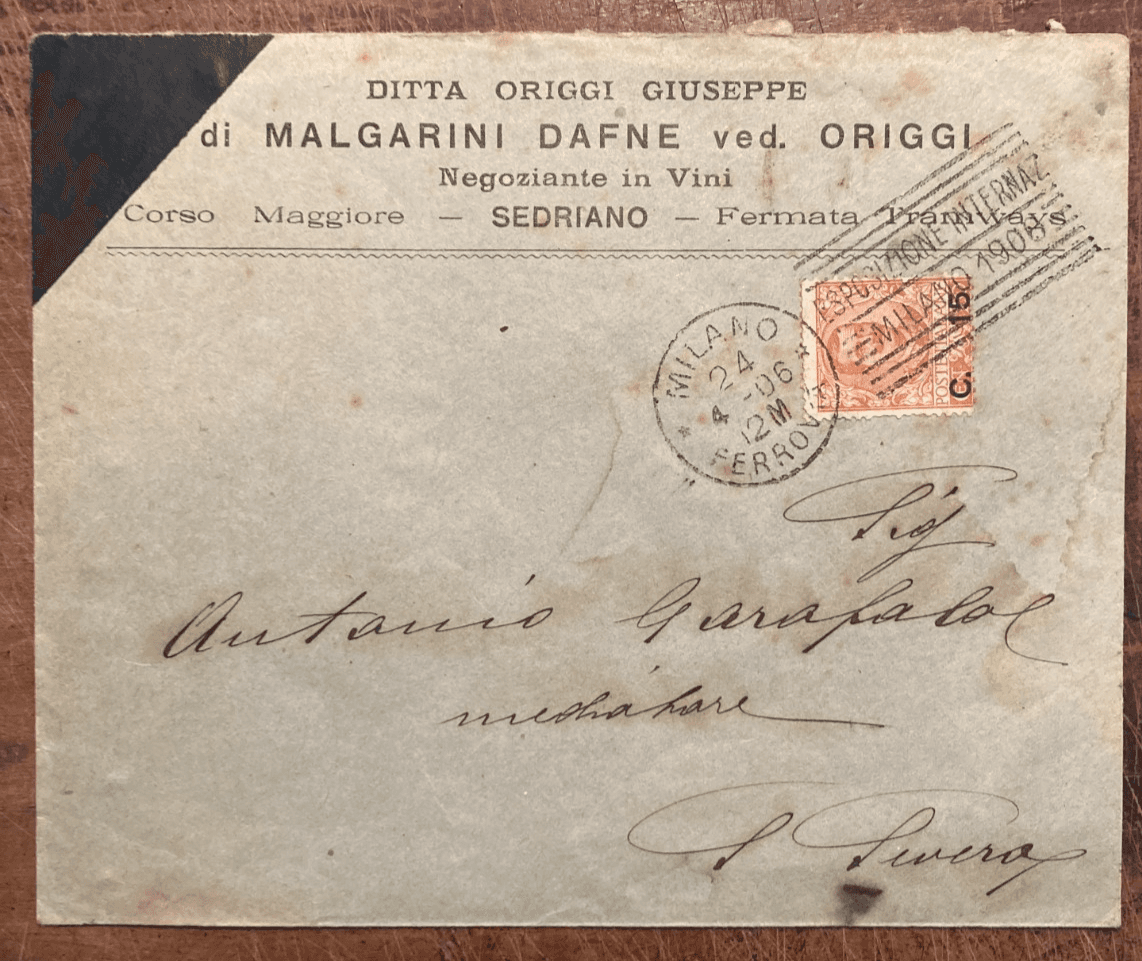 Milano, Sedriano, Puglia: Enologia E Vini Malgarini Origgi, Filatelia, 1906