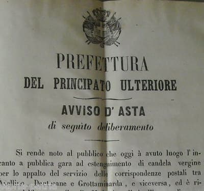 Irpinia: Avellino, Dentecane, Grottaminarda Poste, Servizio Corrispondenza, Appalto