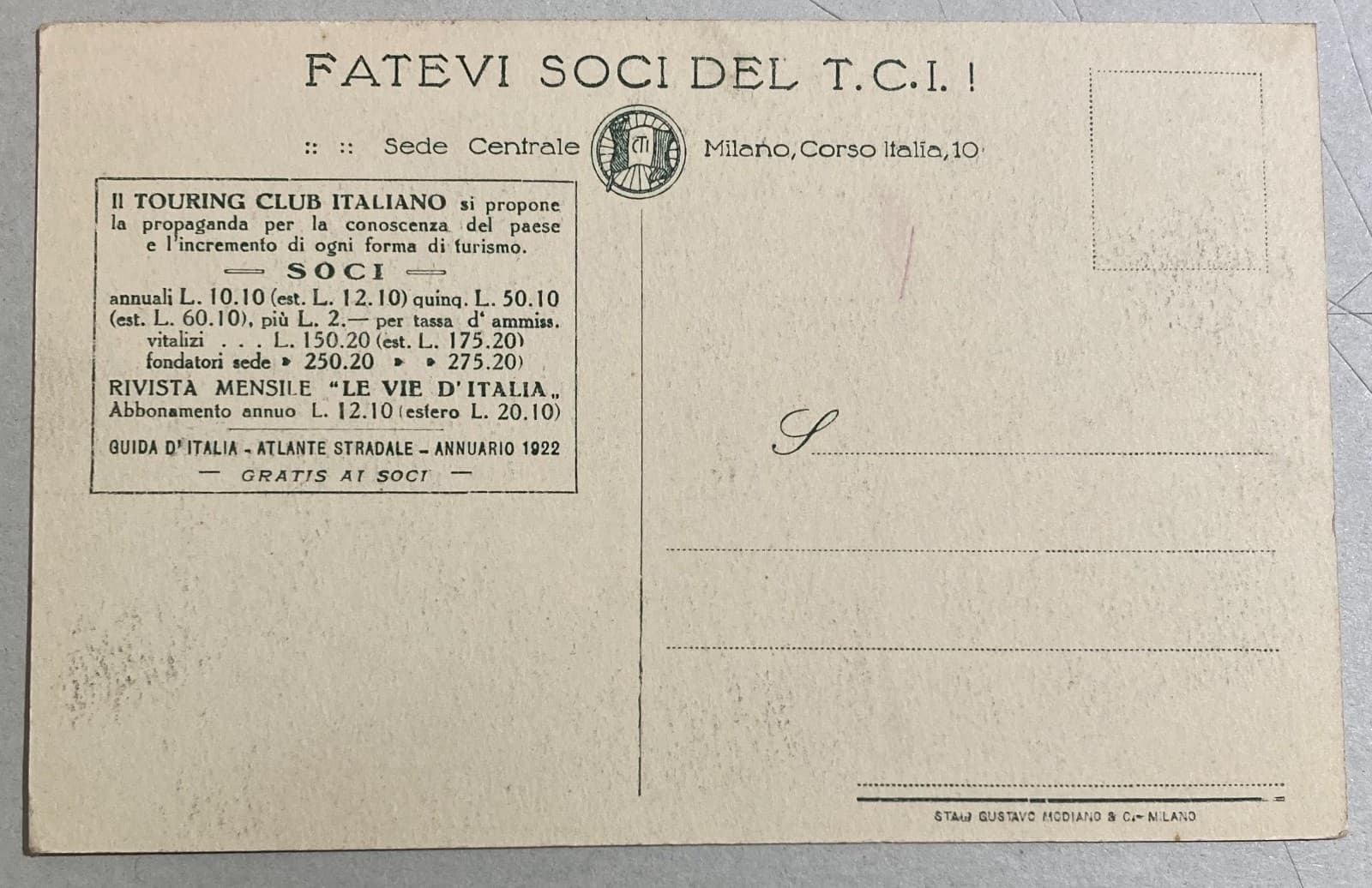 Milano Antica Veduta Architettonica Palazzo Del T.C.I. Cartolina Da Collezione
