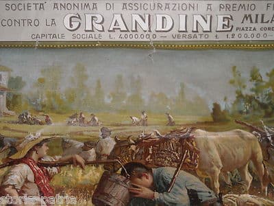 Manifesto Pubblicitario 1907 Assicurazione Grandine Milano Cromolitografia