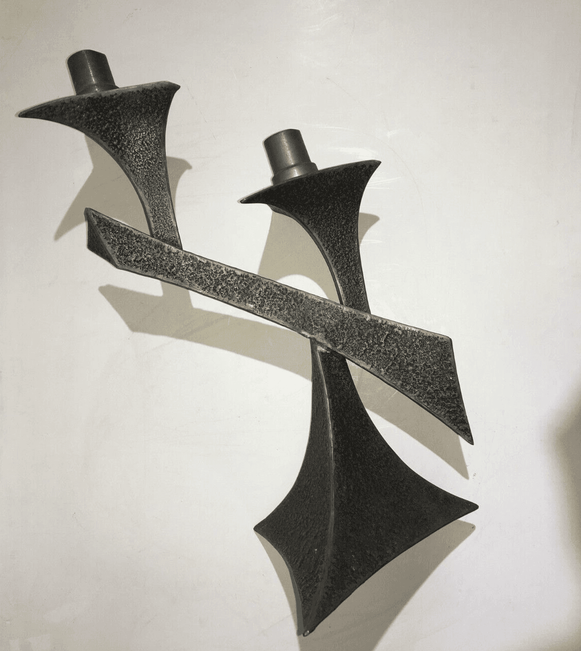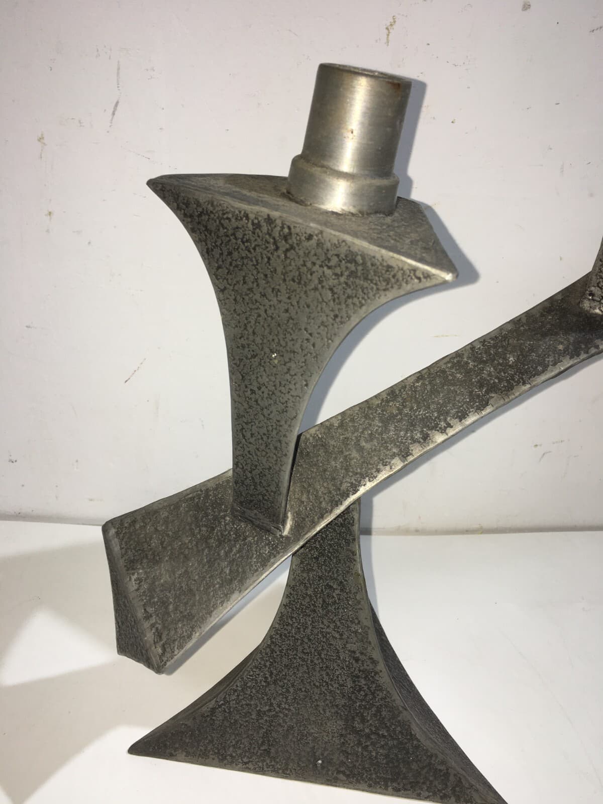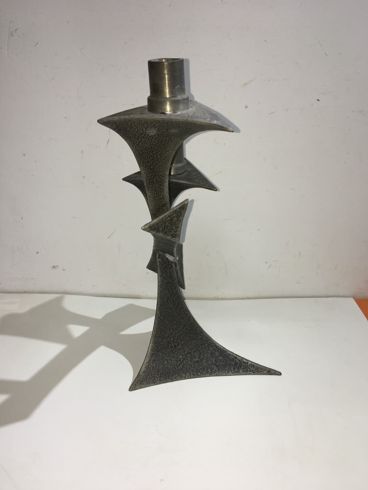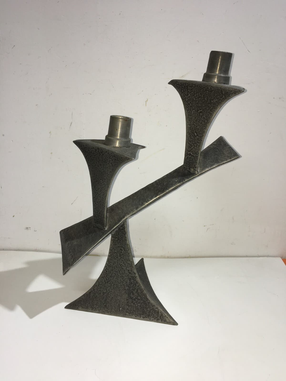 Candelabro In Peltro Stile Modernariato, Metà Del XX Secolo