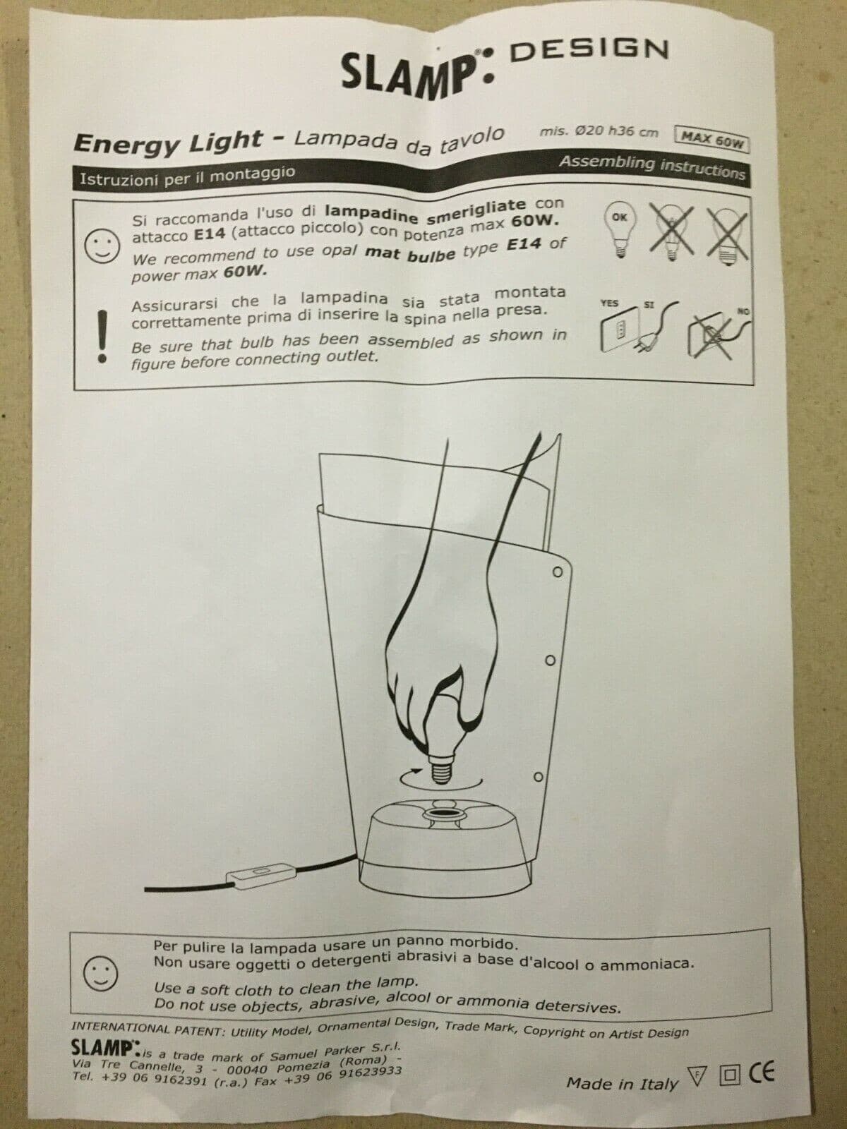 Lampada Da Tavolo Energy Light Slamp, Samuel Parker