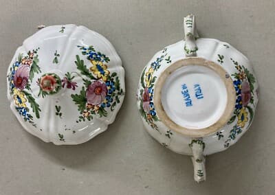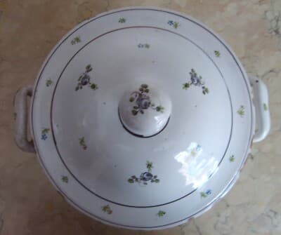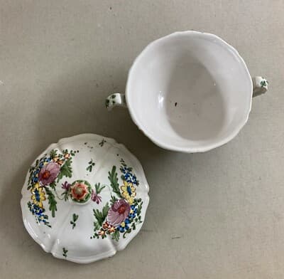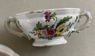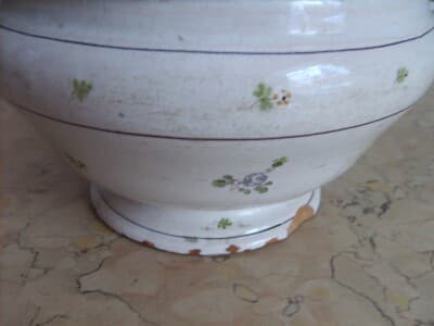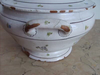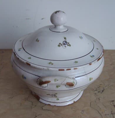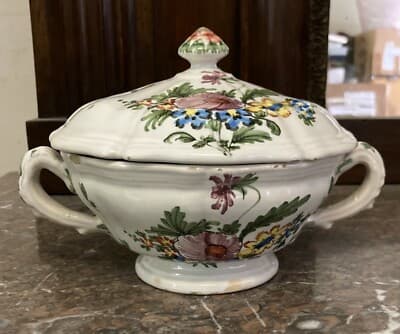 Zuppiera Antica In Ceramica Con Decori Floreali Policromi