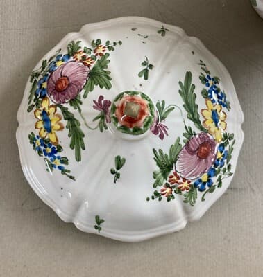 Antica Zuppiera In Ceramica Con Decori Floreali Policromi