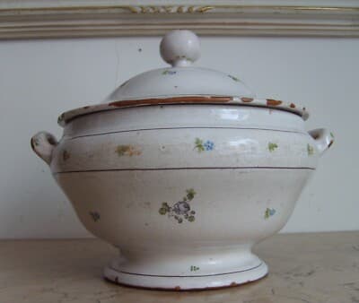 Zuppiera Antica In Ceramica Popolare Con Decori Floreali Policromi
