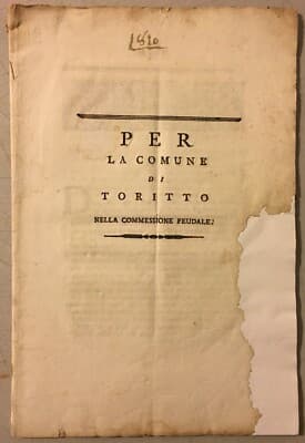Puglia, Toritto: Giuridica, Feudalità E Boschi. Antica Allegazione E Agrimensori
