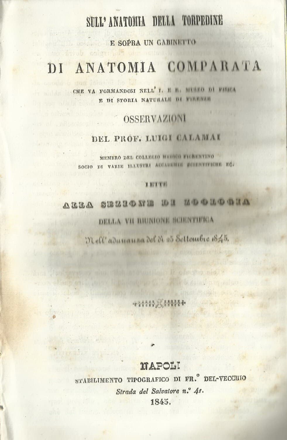 Anatomia Comparata: Storia Naturale, Zoologia, Torpedine, Firenze, Napoli, Calamai, 1845