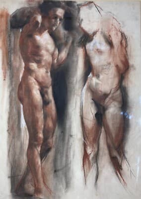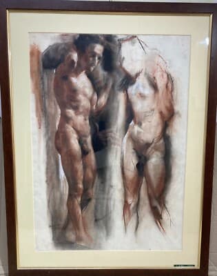 Antonio Bassi (Trani): Coppia Di Nudi Artistici, Tecnica Mista Su Carta Anni '30
