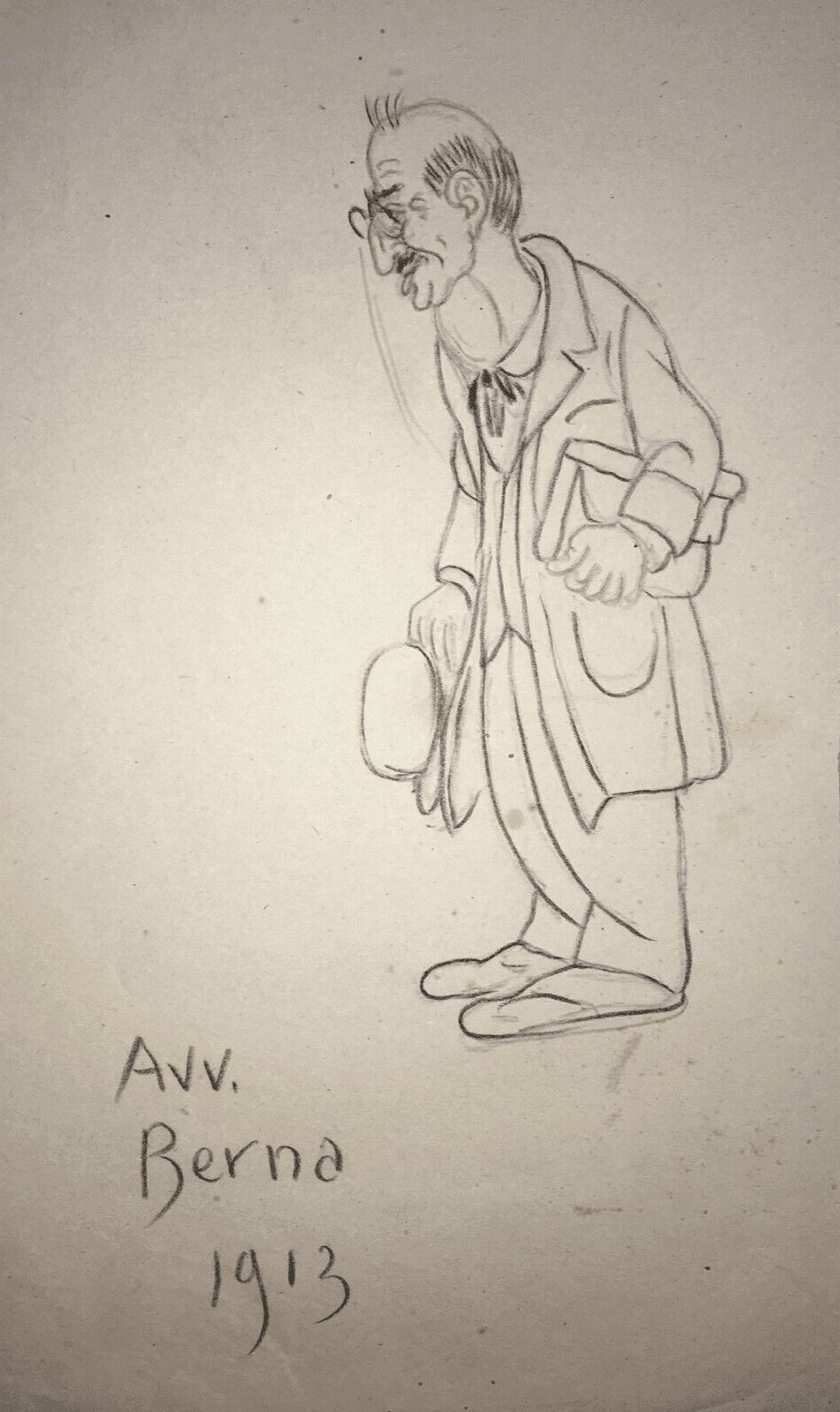 Arte, Caricatura, Antico Disegno, Avvocato Berna, 1913