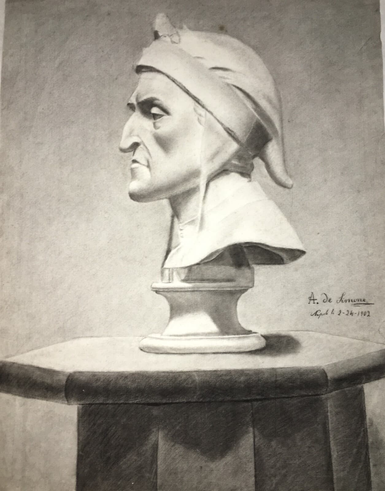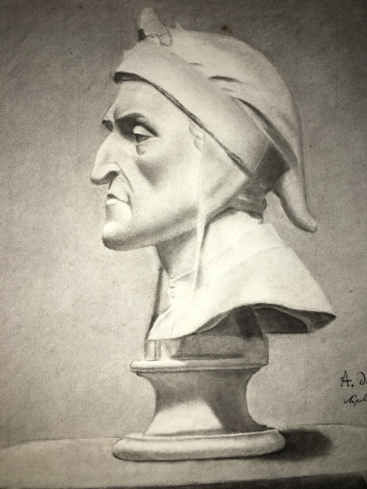 Arte Scultura: Busto Di Dante Alighieri. Antico Disegno, Napoli, Artista De Simone
