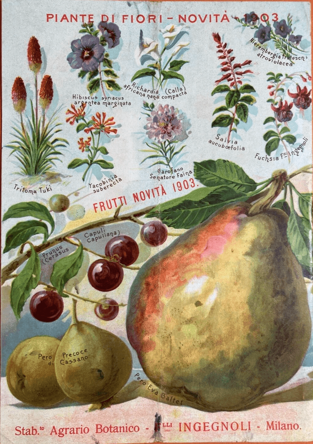 Agraria, Botanica, Ortaggi, Frutta, Fiori, Piante. Antico Catalogo Pubblicitario, 1903