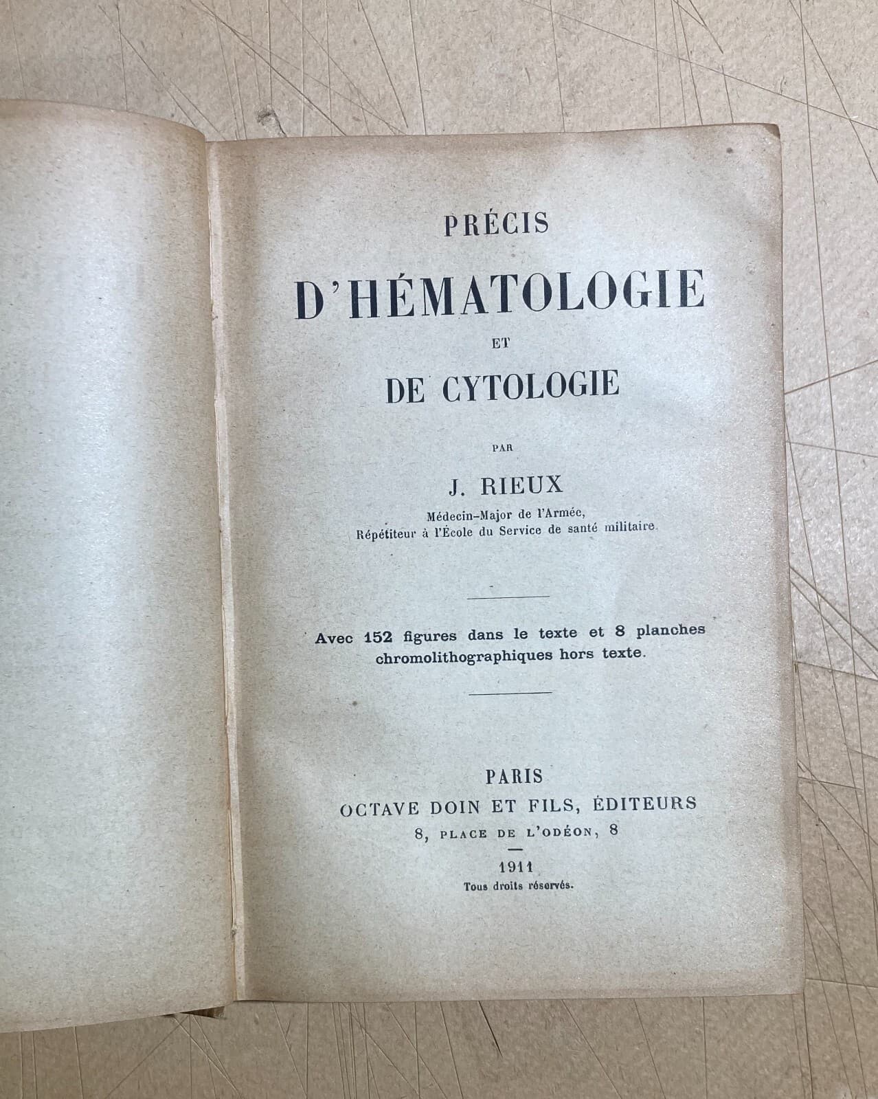 Medicina, Ematologia, Citologia, Chimica. Antica Edizione Francese. Rieux. Illustrata.