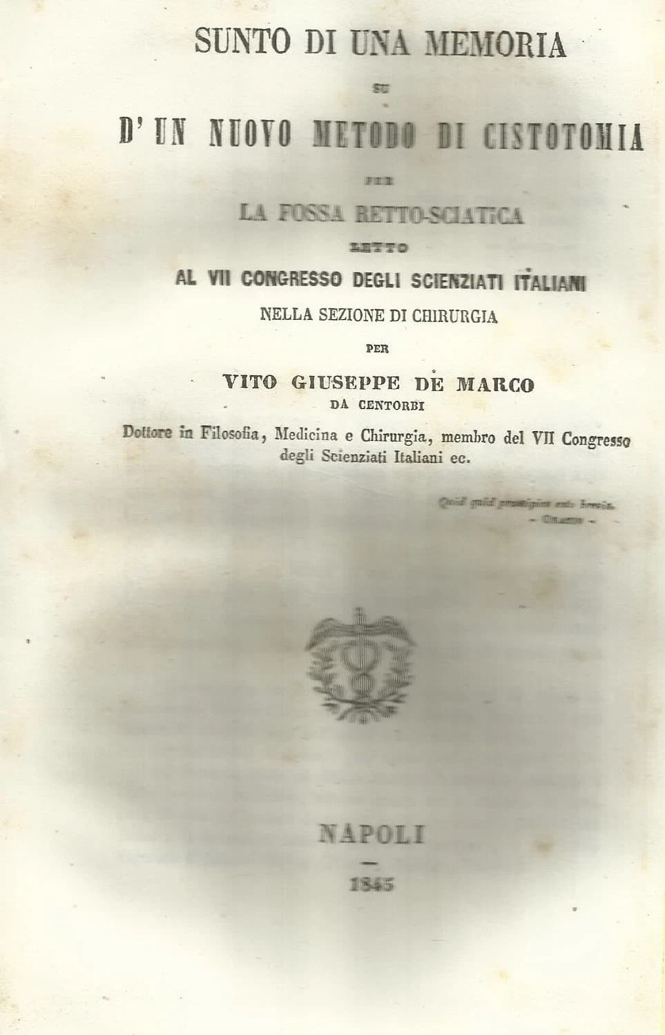 Medicina, Chirurgia, Cistotomia: Napoli, Sicilia, Centorbi, De Marco