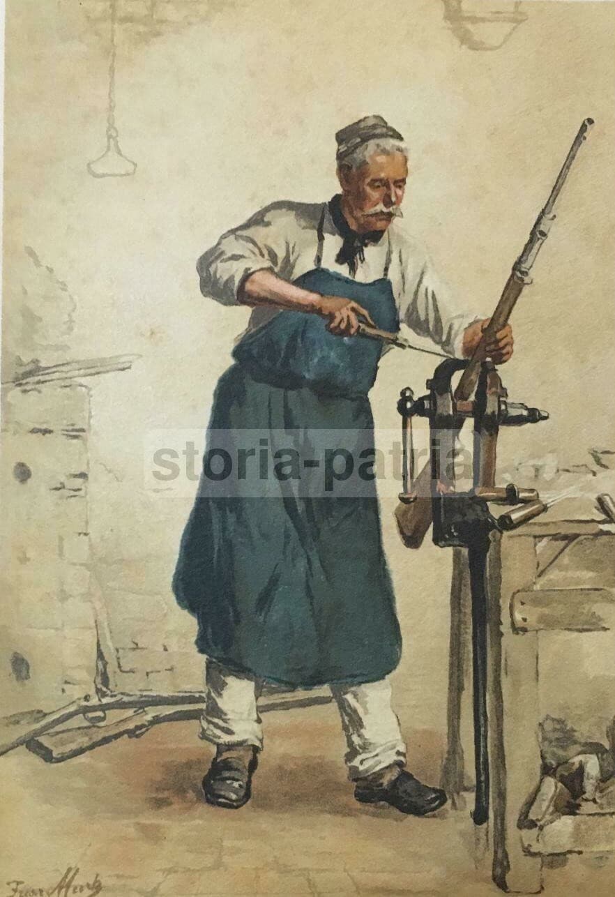 Arte Artigianato: L'Armaiolo (Armurier). Militaria E Caccia, Antica Stampa