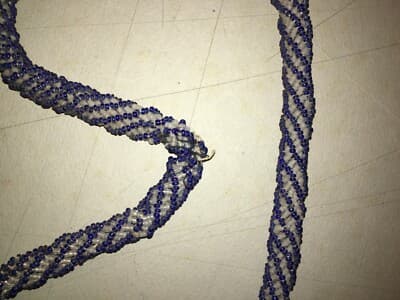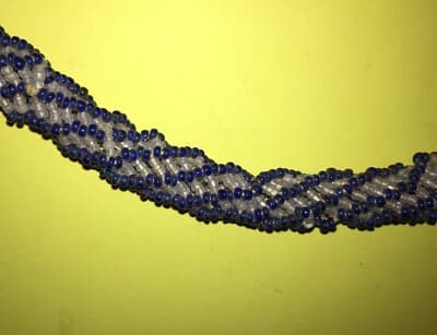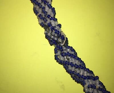 Arte Del Vetro: Antica Collana Di Perline In Vetro Colorato Bianco E Blu d'Epoca