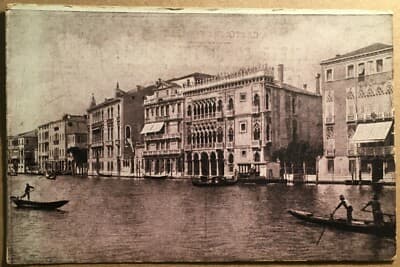 Venezia: Inusuale Veduta Architettonica, Stampa A Colori, Traforo, Canale E Gondole