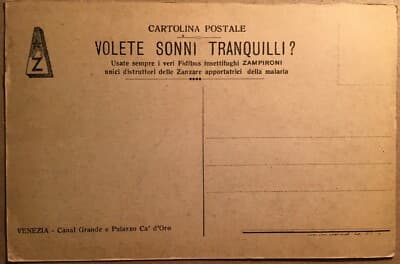 Venezia: Cartolina d'Epoca Pubblicitaria Zampironi Fidibus, Insetticida Zanzare