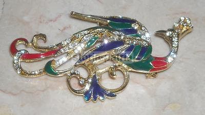 Spilla Vintage Bijoux Cascio A Forma Di Animale Fantastico In Metallo Dorato E Smalti