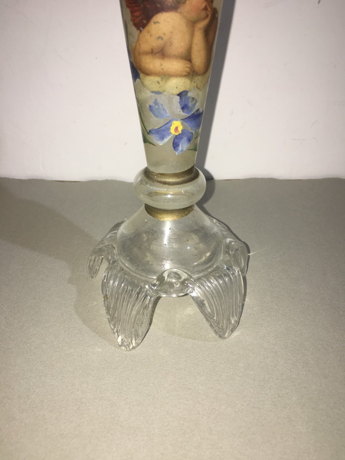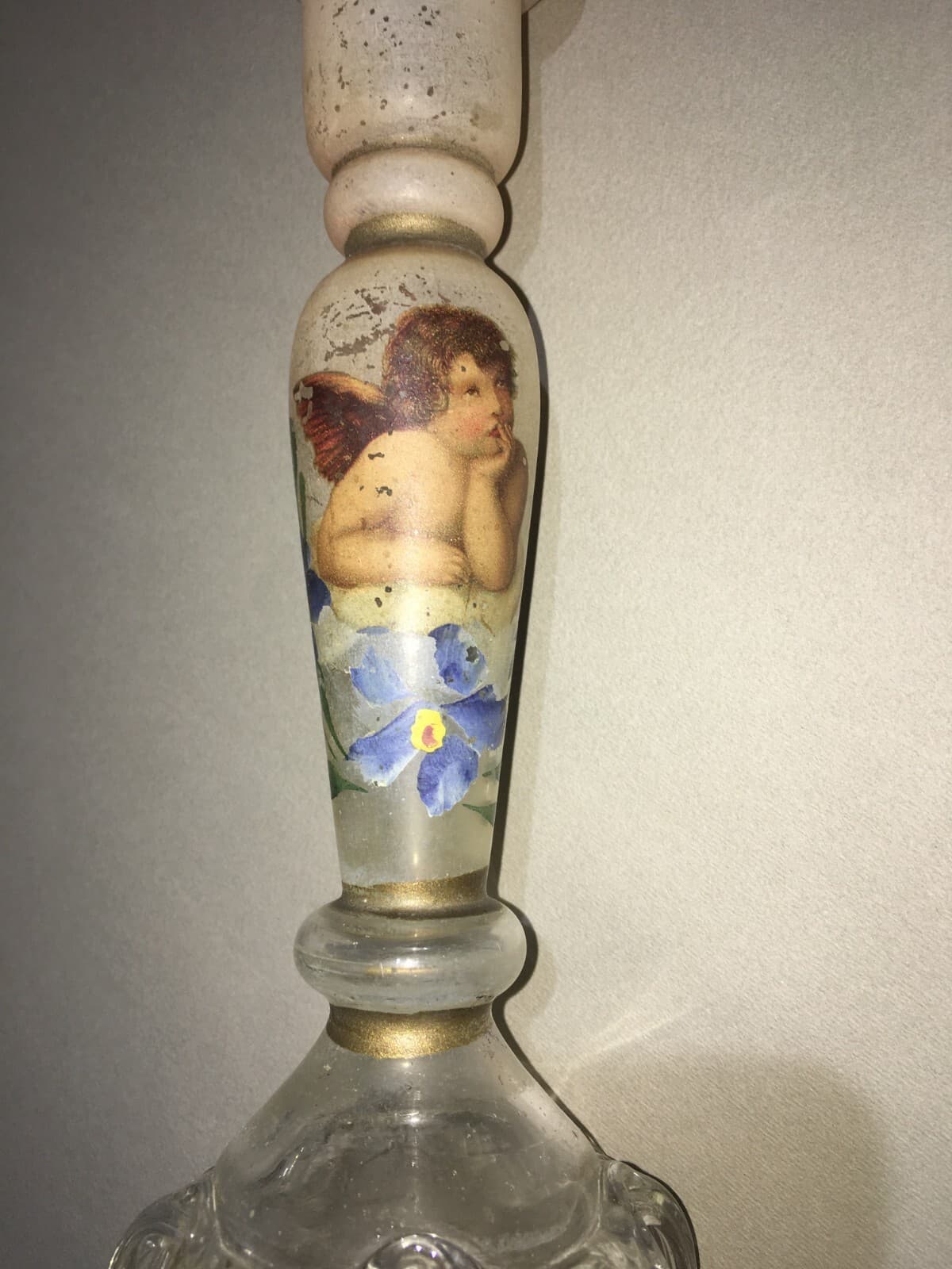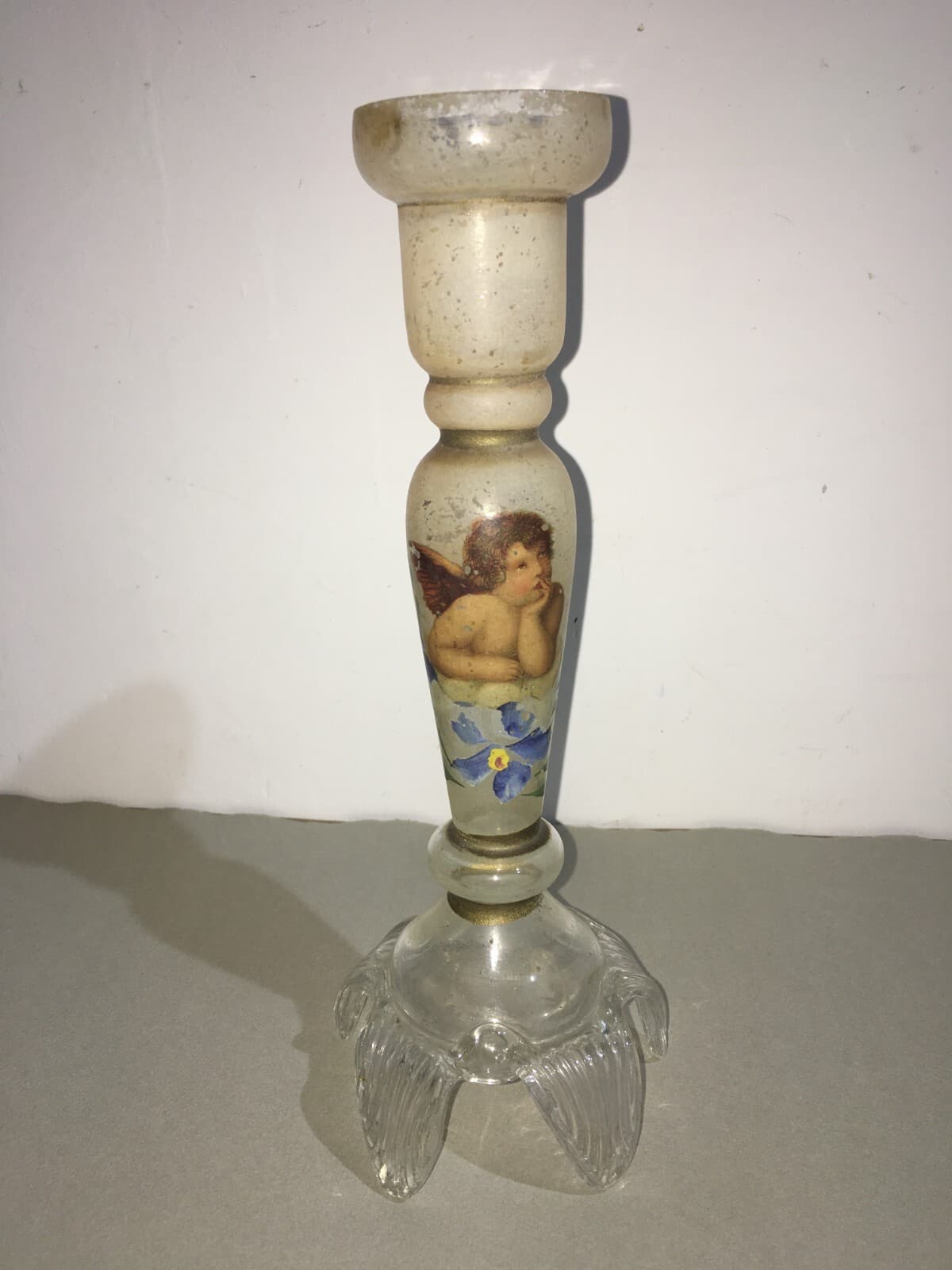 Candeliere In Vetro Decorato A Mano Con Motivi Floreali E Angioletto